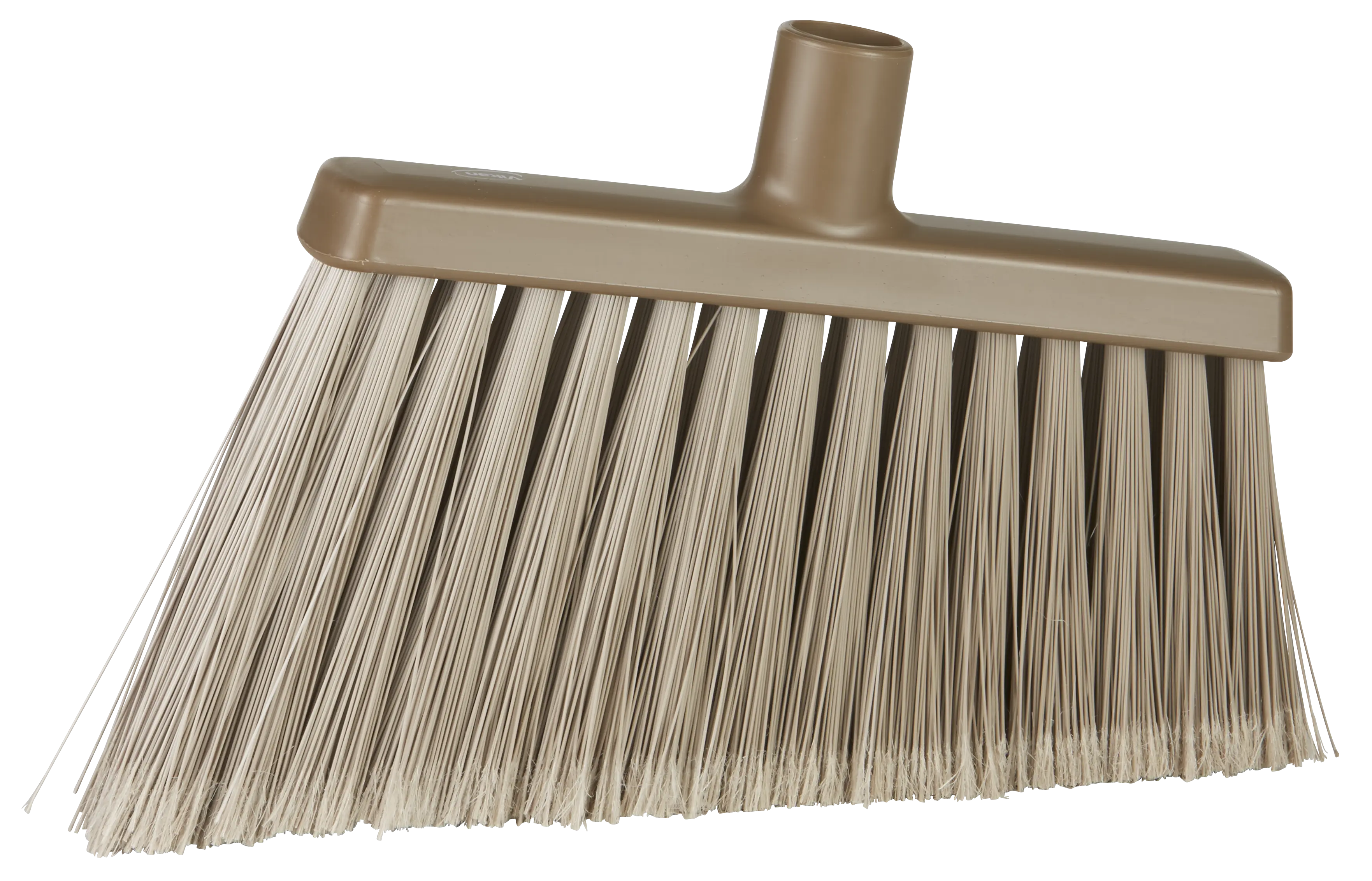 Slim profile cleans in between machinery while angled bristles reach into corners